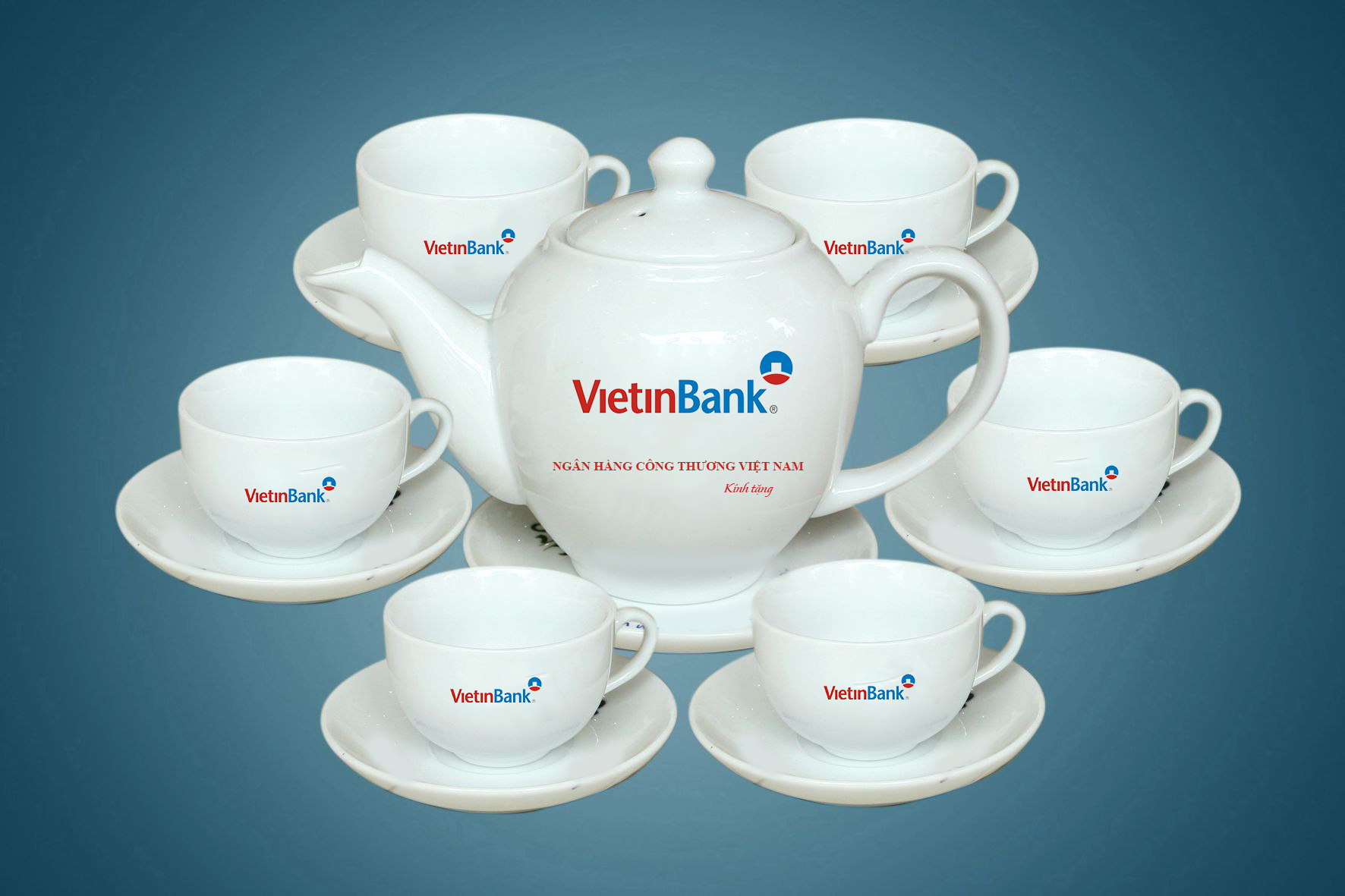 - Bộ ấm chén trà giá rẻ ( bộ ấm chén Bát Tràng ) in logo làm quà tặng thương hiệu cho doanh nghiệp.