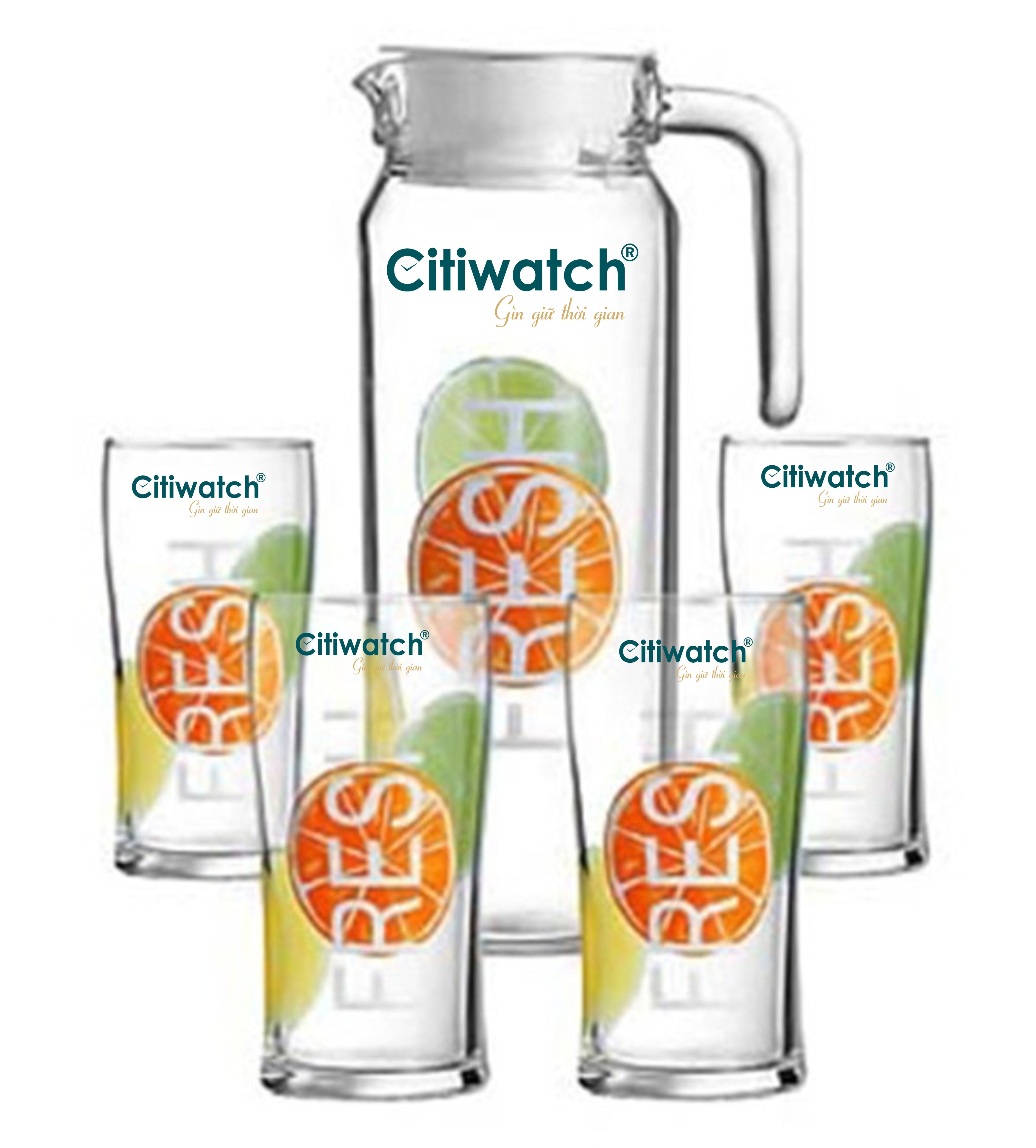 Bộ bình ly thủy tinh cao cấp | bộ bình ly thủy tinh cao cấp in logo citiwatch