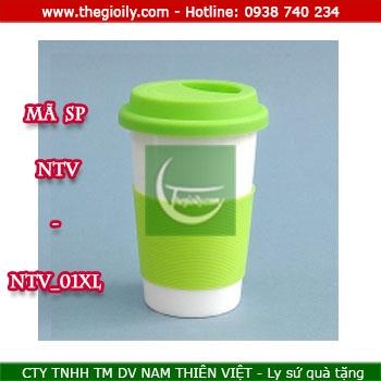 Ly sứ có nắp giá rẻ 01 màu Xanh lá