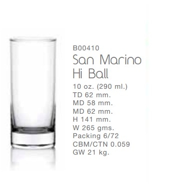Ly thuỷ tinh cao cấp Ocean B00410 Là dòng ly San marino hi ball thuộc ly thuỷ tinh Ocean cao cấp với dung tích nhỏ vừa, miệng ly tròn, thân ly cao thường ly dùng để uống nước, uống sinh tố